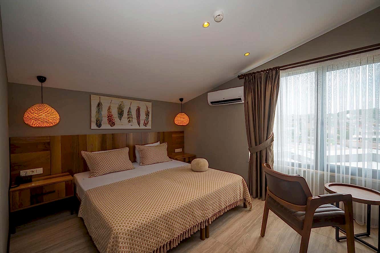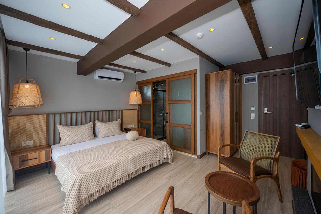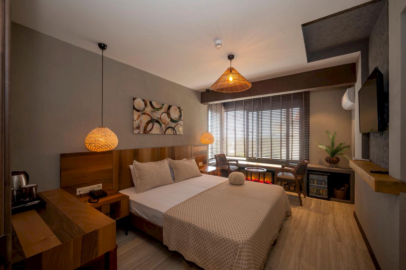 Villa Siesta Hotel projesinde, misafirlere doğanın içinde olma ve şehirden uzaklaşmış hissini verebilmek adına bohem ve modern tasarım anlayışını birleştirecek bir yol izlenmiştir.