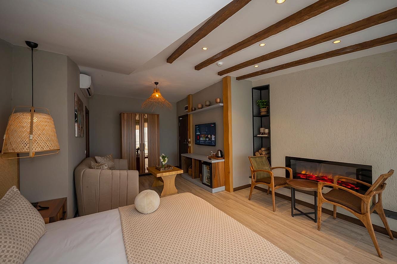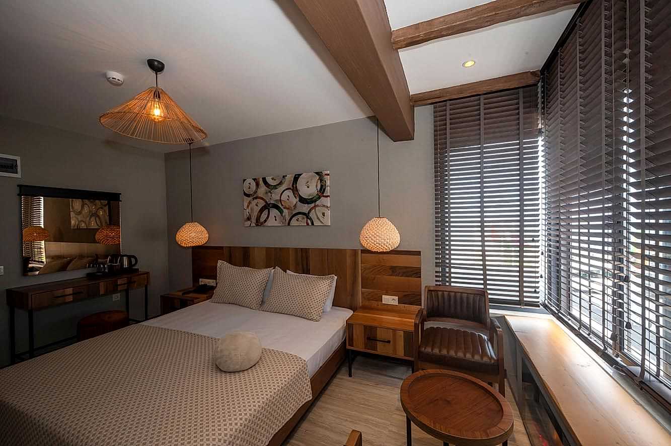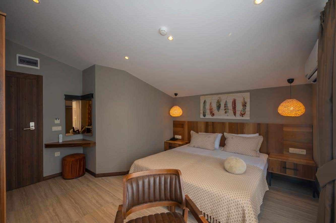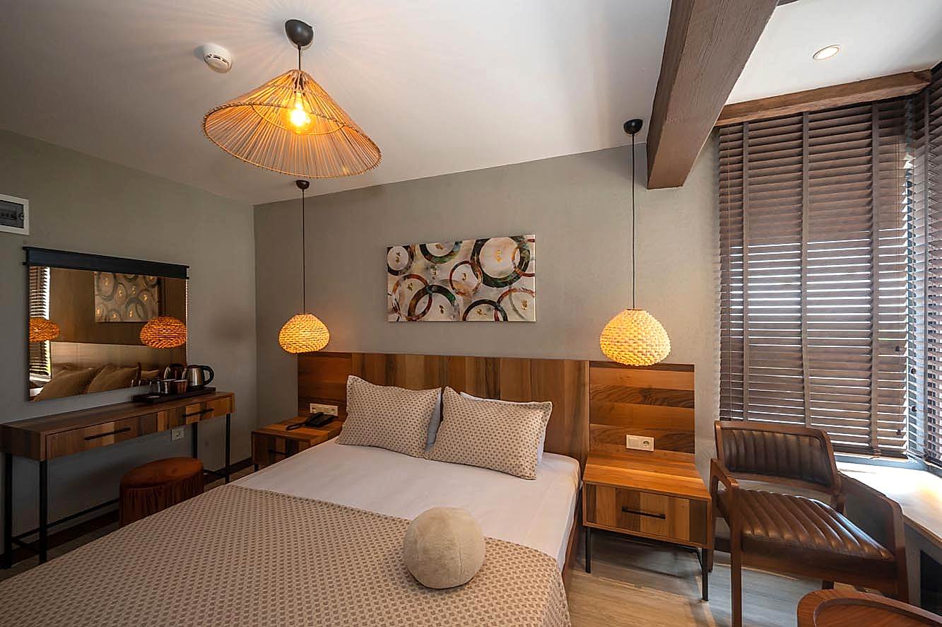 Villa Siesta Hotel projesinde, misafirlere doğanın içinde olma ve şehirden uzaklaşmış hissini verebilmek adına bohem ve modern tasarım anlayışını birleştirecek bir yol izlenmiştir.
