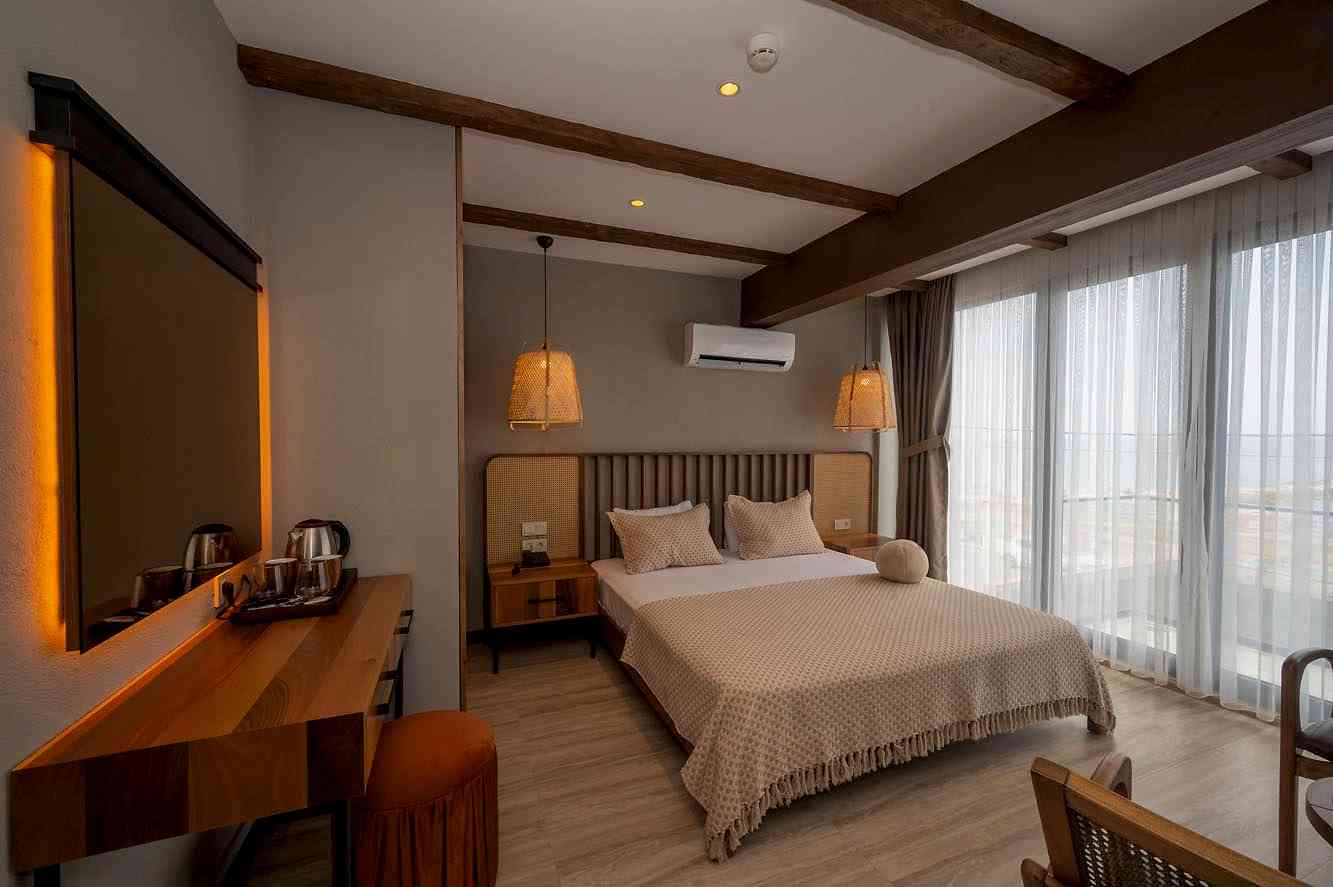Villa Siesta'nın 5 odasına deniz manzarası hakimdir. Seçilen mobilyalar ve malzemeler ile misafirlerin odalarından deniz manzarasının keyfini çıkarmaları sağlanmıştır. Odalarda genel tasarım konfor ve rehabilitasyon anlayışına sadık kalarak tasarlanmıştır.